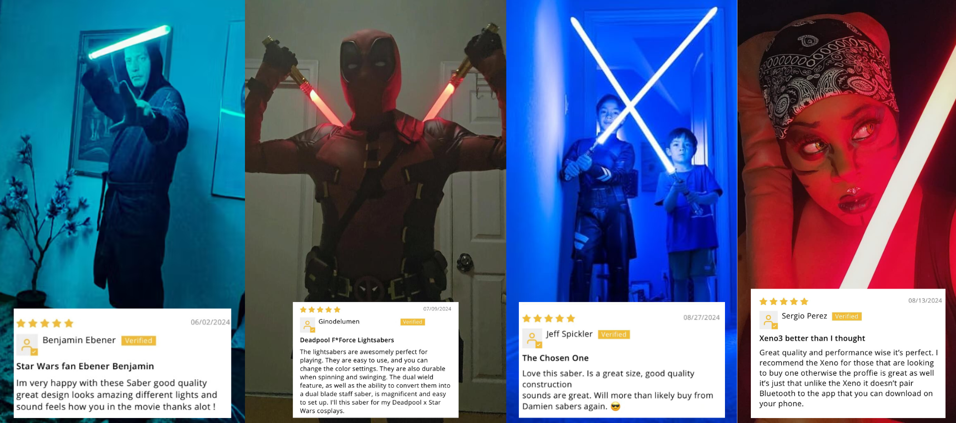 Every DamienSaber custom lightsaber is covered by a one-year limited warranty against any form of manufacturing defects.