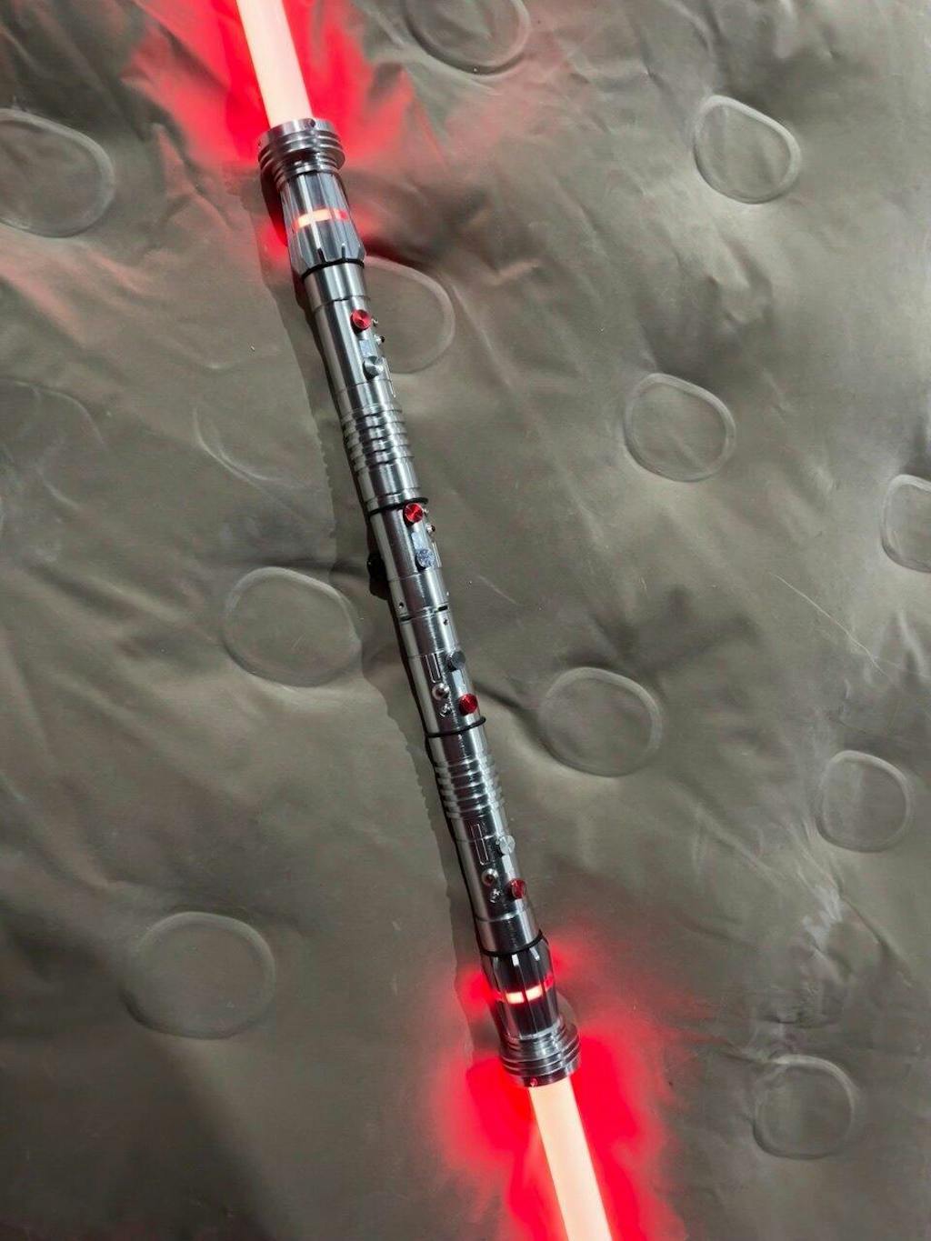 This Darth Maul saber is crazy good. The double blade looks insane when you light it up, super bright and super smooth to spin. The sound effects hit hard and make it feel powerful every time you ignite it. Build quality is solid and honestly way better than I expected for the price. Looks amazing in person and even better in the dark. I’m honestly super happy with it!